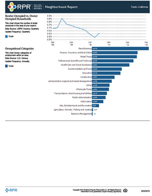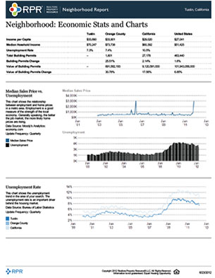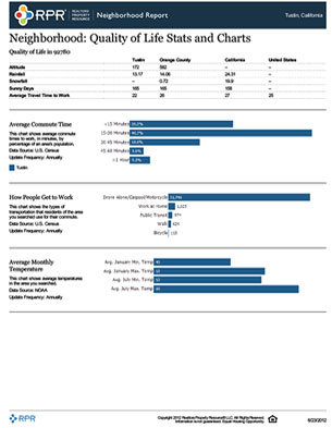 The Neighborhood Report summarizes neighborhood data including charts and statistics about the housing, economics and quality of life of the neighborhood.