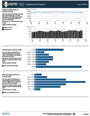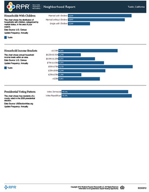 The Neighborhood Report summarizes economic, housing, demographic and quality of life information about an area and/or specific neighborhoods using the most up-to-date MLS information exclusively available to REALTORS®.