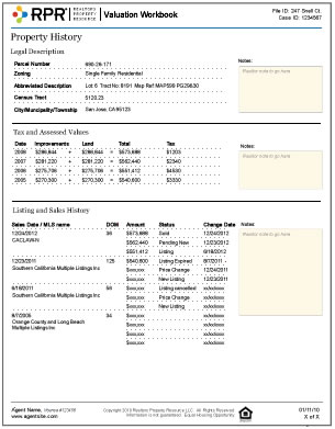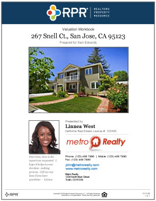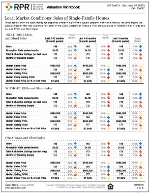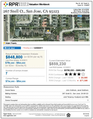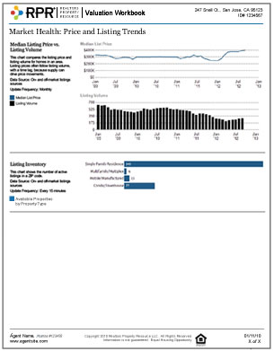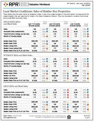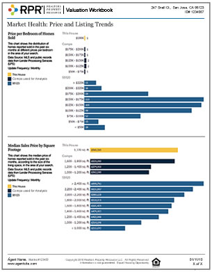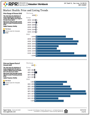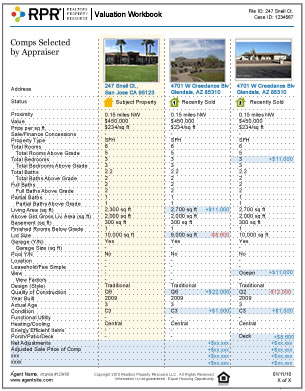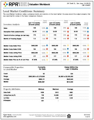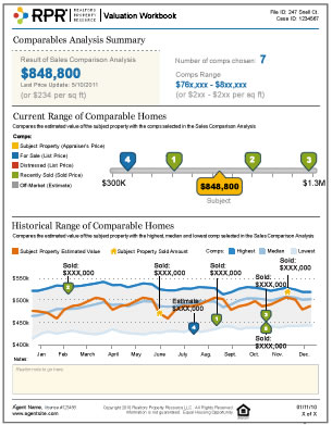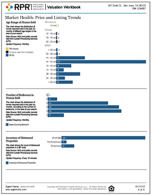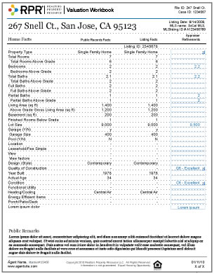 The Expert REALTOR® Valuation Report is based on The RPR Valuation Workbook summarizing the evaluation made using the Sales Comparison Analysis. It includes details about the subject property and the comps and adjustments made in the workflow, as well as an overview of local housing market conditions produced using the most up-to-date MLS data.